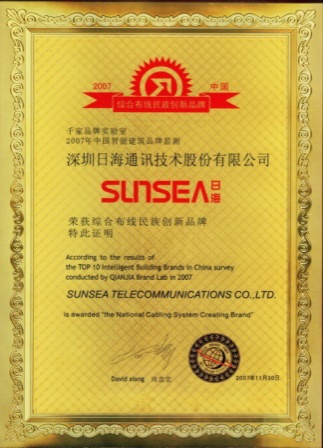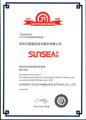 2007年11月29日~30日,bbin宝盈公司智能综合布线受邀前往上海光大会展中心酒店,参加由千家网筹办的“2007年第八届中国国际建筑智能化峰会暨颁奖典礼”,获得了“布线民族创新品牌”特别奖项。